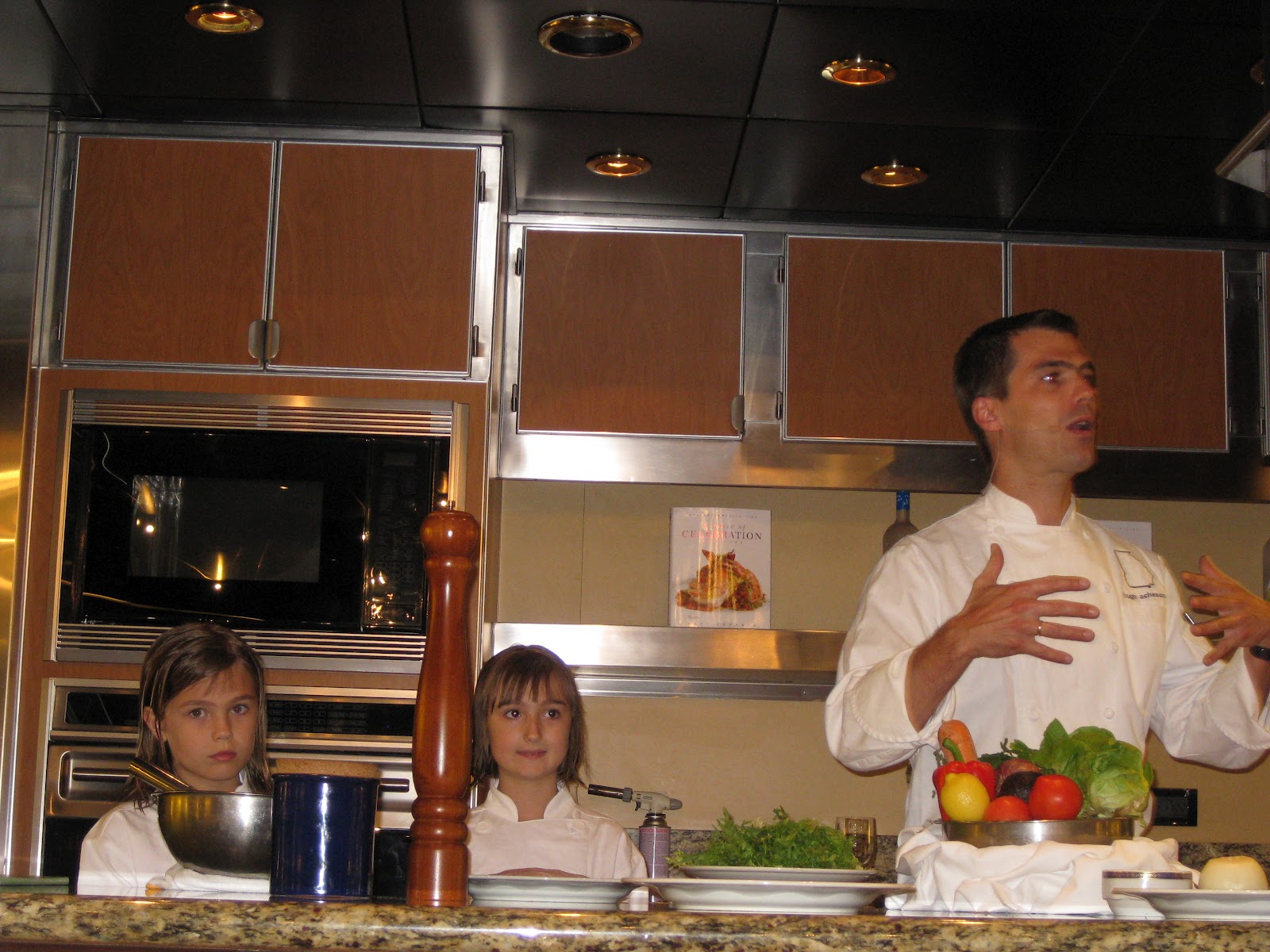 Hugh Acheson is a chef/partner of three restaurants in Georgia (Five and Ten and The National in Athens and Empire State South in Atlanta). He is a James Beard award winner for his cookbook, A New Turn in the South. He is also a Top Chef Master and currently a Top Chef judge. We tried to get some dirt on the new season of Top Chef, but the only thing he could tell us was that they just started filming. Hugh brought two sous chefs with him, his adorable daughters Beatrice and Clementine.