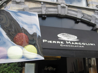 In Bruxelles we stopped by Pierre Macrolini and tried some French macaroons. Once again, there were so many options that it was hard to decide what to try. I settled on a pistachio and a chocolate/praline ganache and that was a great decision.
