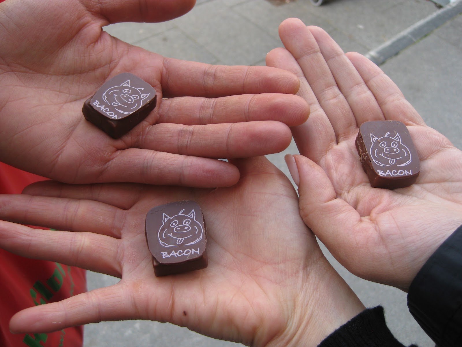 We passed many many chocolate shops and I loved looking in the windows at the very elaborate decorations, made out of chocolate, of course. We tried pralines from Neuhaus in Brugge and The Chocolate Line in Antwerpen…there were so many options, it was hard to make a decision. At the Neuhaus in Brugge, I tried a “Figaro” praline with hazelnuts and one with dark chocolate and butter cream and both were delicious. I bought most of my Belgian chocolate souvenirs at Neuhaus. At The Chocolate Line in Antwerpen we decided to try some unconventional pralines…we all had a bacon one and I also tried a lemongrass one. The bacon one was a little confusing to my taste buds and I’m not sure if I liked it. The lemongrass was too overpowering and I was not a big fan of that one.