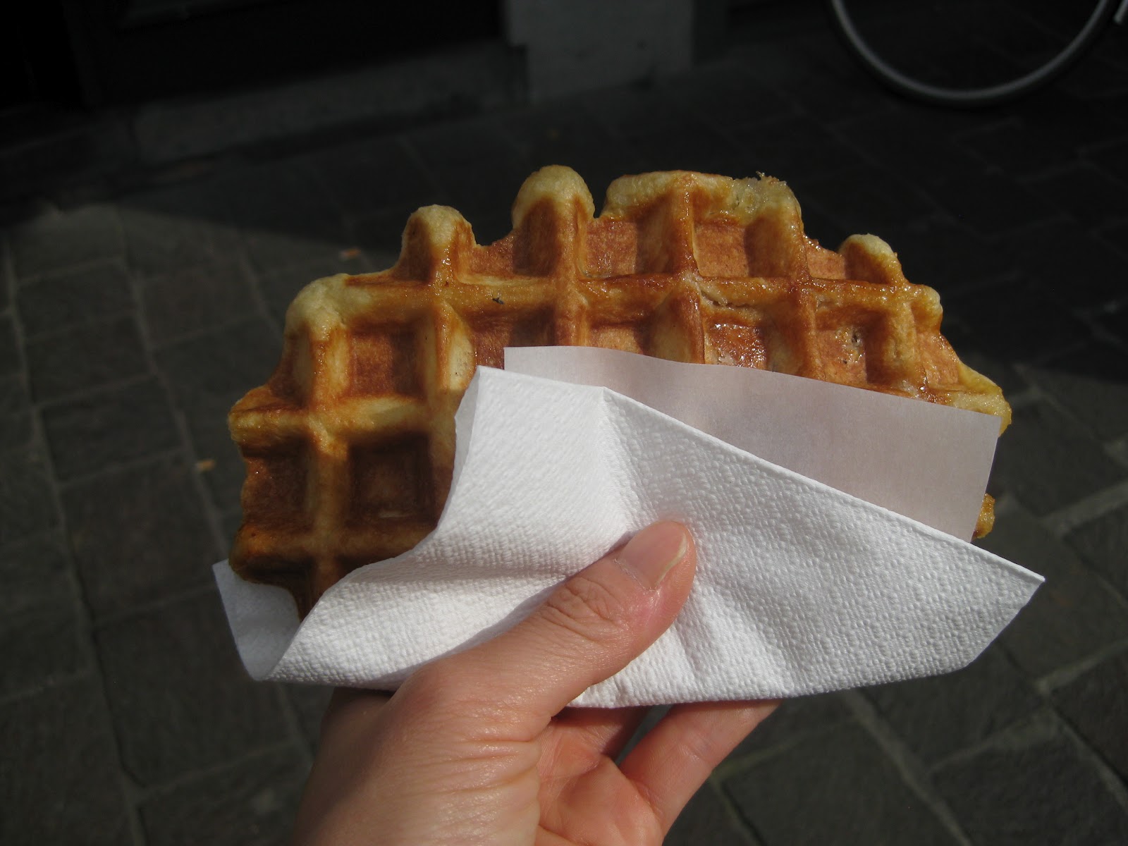 First and foremost, the Belgian waffle (waffel)…yum. No syrup required. No fork required (unless you get it with whipped cream, which I did try once). There were little waffle shops all over, making it a perfect mid-morning or mid-afternoon snack. I tried to eat a waffle every day, but there was just not enough room in my stomach for all of the things I wanted to eat and drink every day.