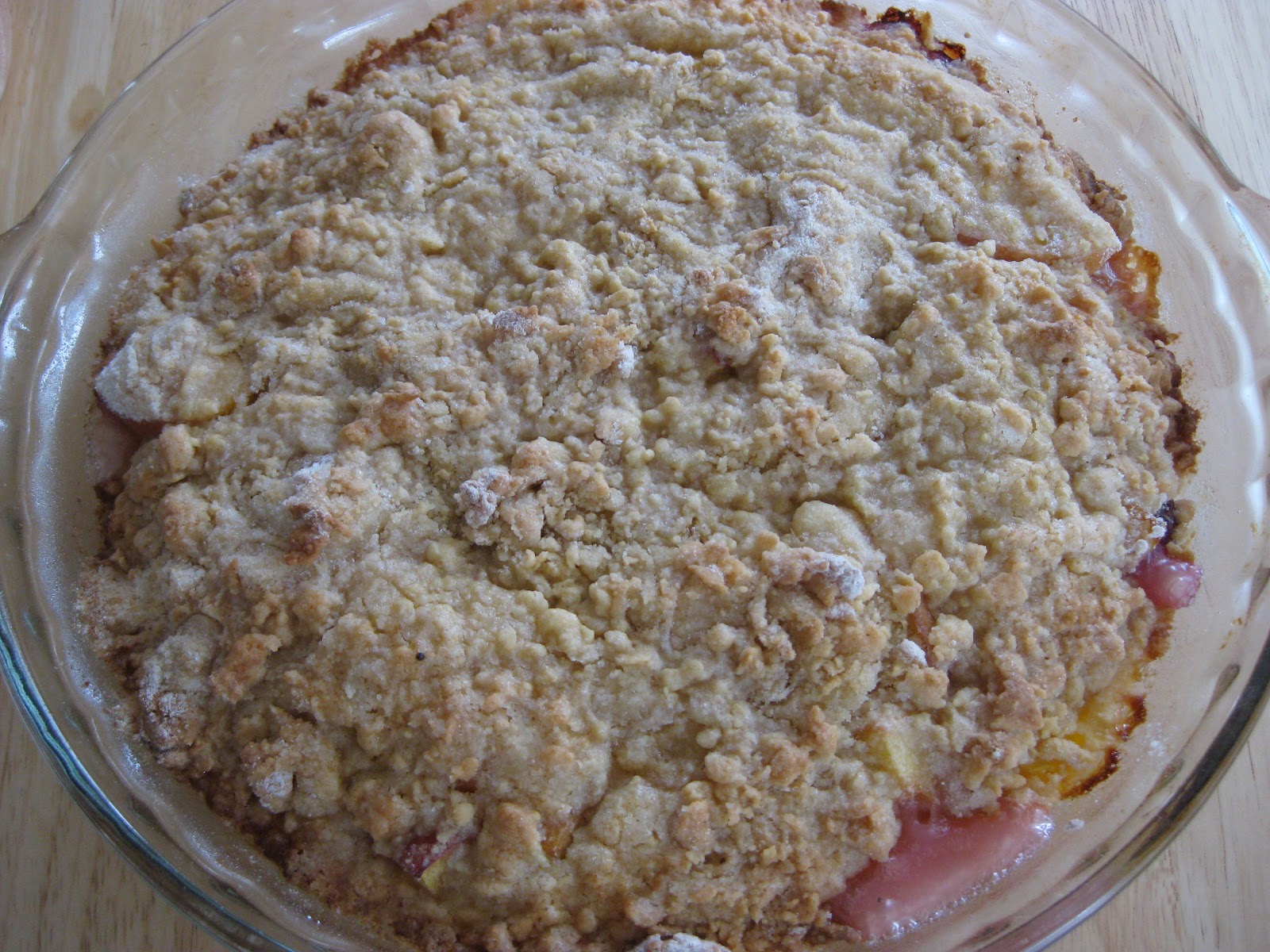 I made it for a potluck (more on that to come later), and it was quite a hit. I used 4 peaches (but could probably have used a couple more), and the “not that sweet” option (see step 3 below).