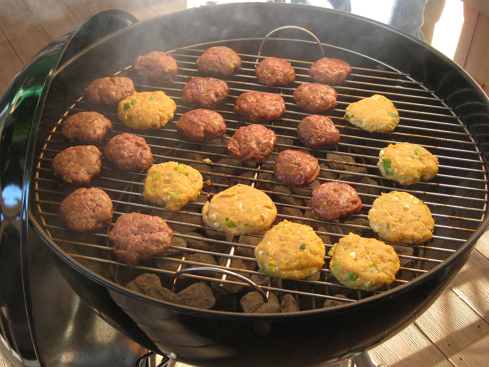 | Beef, lamb, and Buffalo chicken sliders on the grill |