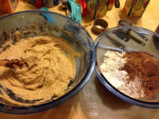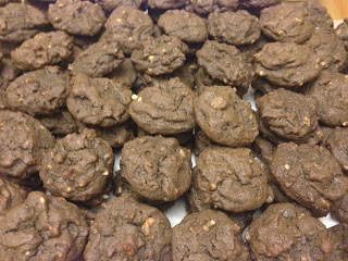 3. Stir in chocolate chips and walnuts. Drop by rounded teaspoon onto baking sheets.