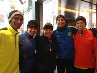 Saturday’s long run was my first with the team. I woke up to a 9-degree morning (brrrr!) so it was nice to have some camaraderie and motivation to get out there. It warmed up a *bit*, but the wind chill kept it below 10. It’s been awhile since I have been out in that kind of weather and had a hard time figuring out what to wear…settled on double layers, my warmest running shirt and my fleece-lined running jacket, which just happens to be orange (my team color). I debuted a new Run for Research hat (swag from the American Liver Foundation) and a new running belt I picked up at REI last weekend. I had gotten used to running with my phone, and am excited to be hands-free!
