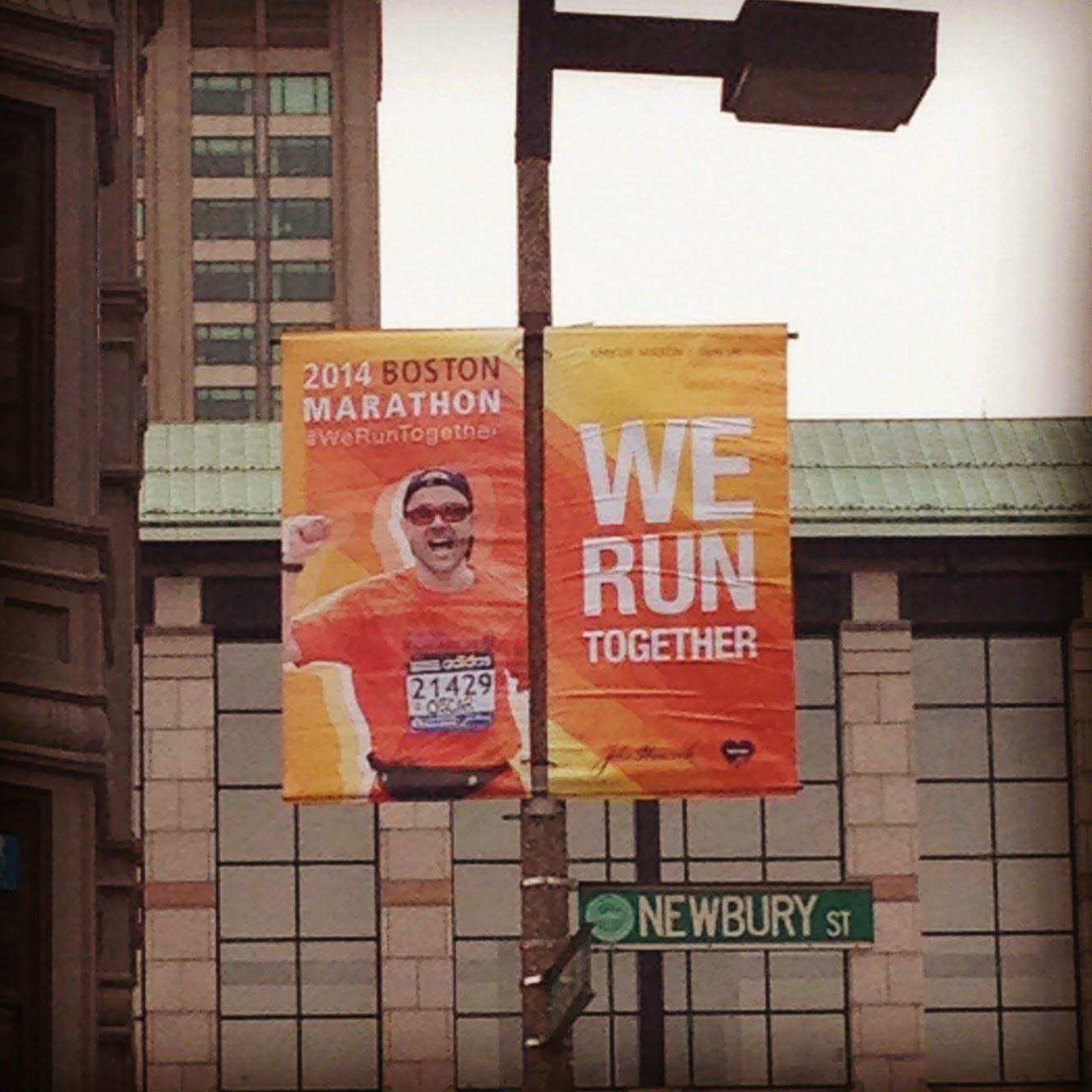 Today was my first day back out there and other than having a constantly drippy nose and wishing I had brought gloves, no major complaints. I took my run out to the Jamaica Pond and once back in the city, I made the infamous “right on Hereford, left on Boylston” to see the marathon banners that went up this week.