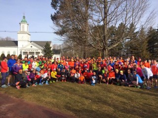 | Team photo in Hopkinton – can you find me? Photo credit: Run for Research |