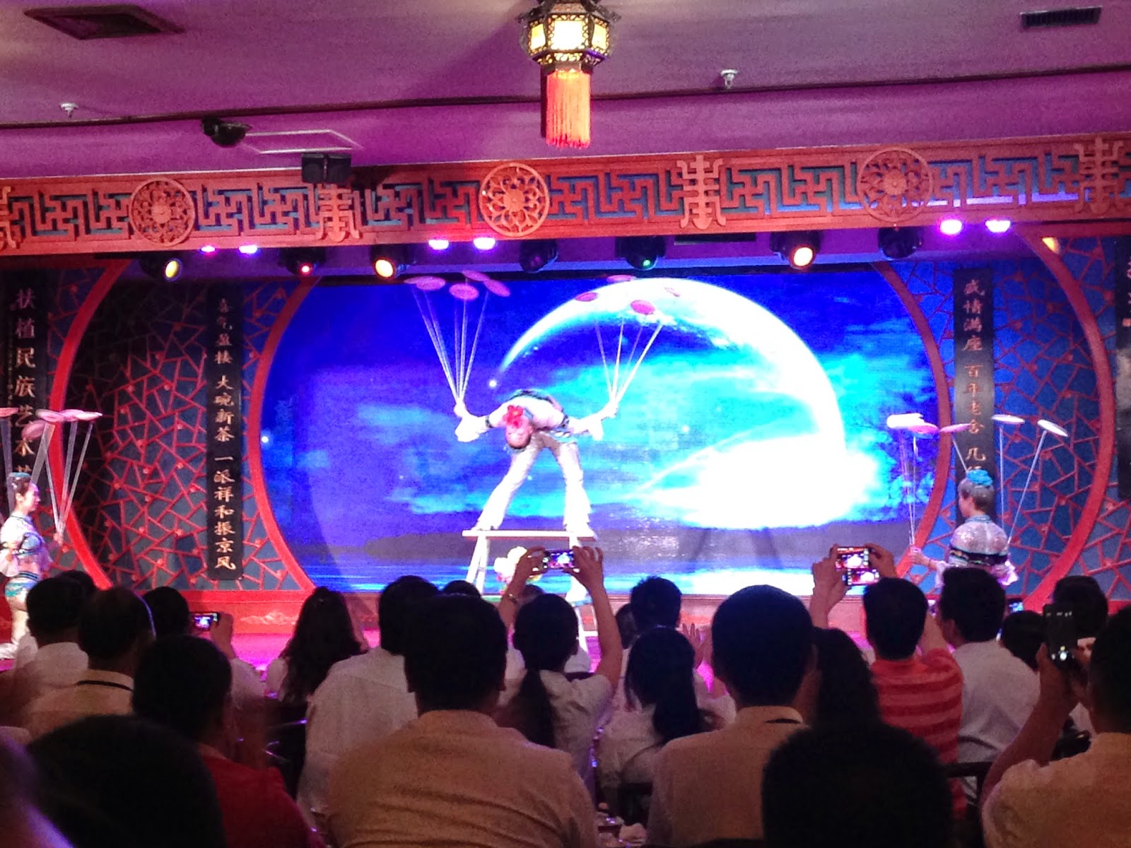 One evening we went to the Laoshe Teahouse for a performance of Peking opera, which included performances of comedy, oral mimicry, pot juggling, spinning plates, and Sichuan opera. We had a Bento box dinner and delicious tea.
