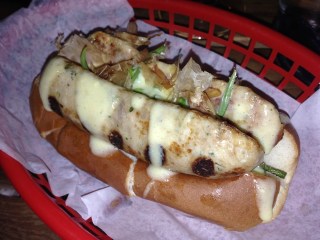 Alder is adorable (yes, I realized on this trip that I need to work on my adjectives) and the evening was so nice that we sat outside. Everything on the menu is meant to be shared, which was great because it meant we could try more things! Unfortunately they were out of the kale summer roll (bummer), but there were two off-menu specials: an homage to a NYC hot dog made with rabbit sausage and a pu pu platter which was two bites of five things on the menu. We started with the pub cheese, rabbit sausage “hot dog”, shrimp on shrimps, and the shephard’s pie tartare. Raw lamb (part of the tartare) and rabbit sausage were firsts for all of us. The pub cheese was a surprise winner for me, especially once we found out why it was a strangely purple shade (from red wine).