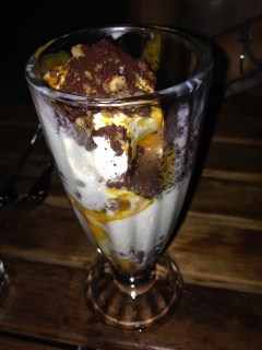 Since there is always room for dessert, we tried two: carrot cake gelato and the macerated strawberries with corn bread and fancy whipped cream (fancy is my description because I can’t remember exactly what it was). You could definitely get a glimpse into Wylie’s world of molecular gastronomy with the carrot cake gelato. There was a party in my mouth. Speaking of Wylie, we chatted with our server about him and she us that he’s very nice, but “he’s a chef…of course he gets cranky.” Apparently they are closing WD50 to make way for some fancy new condos.