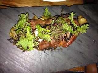 Since we had no specific plan for Friday evening we started to check out what looked good on Thrillist and Eater and came across Wylie Dufresne’s new restaurant Alder and we were able to get a 9:45 reservation through OpenTable. What did we do before smartphones? We Uber’d over to the East Village and popped into a cute wine bar for a spritz (an aperol spritz) and a snack (trio of bruschetta). Btw, Wylie Dufresne won the James Beard Foundation award for Best Chef New York City in 2013.