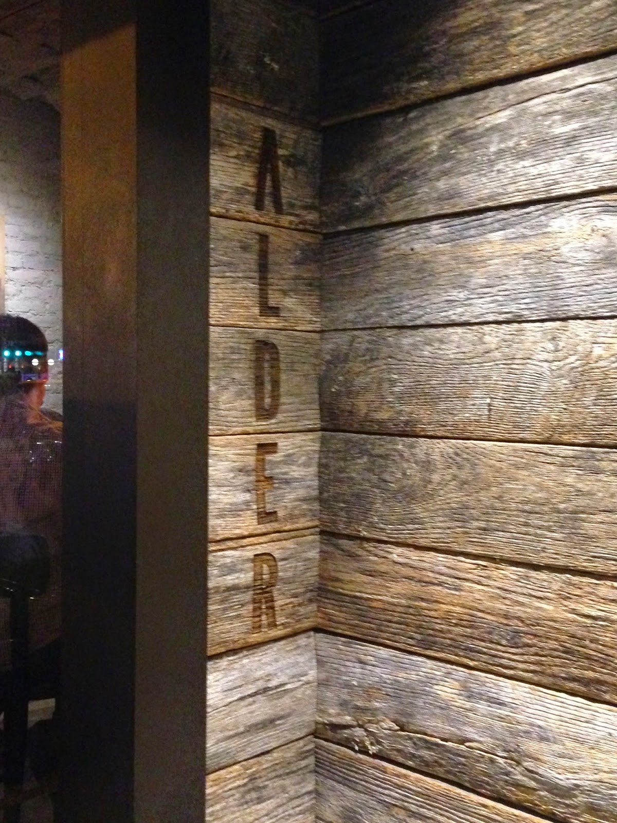Alder is adorable (yes, I realized on this trip that I need to work on my adjectives) and the evening was so nice that we sat outside. Everything on the menu is meant to be shared, which was great because it meant we could try more things! Unfortunately they were out of the kale summer roll (bummer), but there were two off-menu specials: an homage to a NYC hot dog made with rabbit sausage and a pu pu platter which was two bites of five things on the menu. We started with the pub cheese, rabbit sausage “hot dog”, shrimp on shrimps, and the shephard’s pie tartare. Raw lamb (part of the tartare) and rabbit sausage were firsts for all of us. The pub cheese was a surprise winner for me, especially once we found out why it was a strangely purple shade (from red wine).