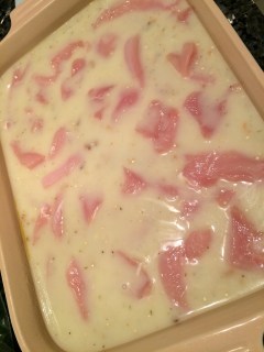 3. Remove the sauce from the stove top and stir in 1 cup of water, quinoa, and bacon until combined. Pour the mixture into the prepared baking dish. Lay the strips of chicken breast on top of the quinoa mixture. Bake uncovered for 15 minutes.