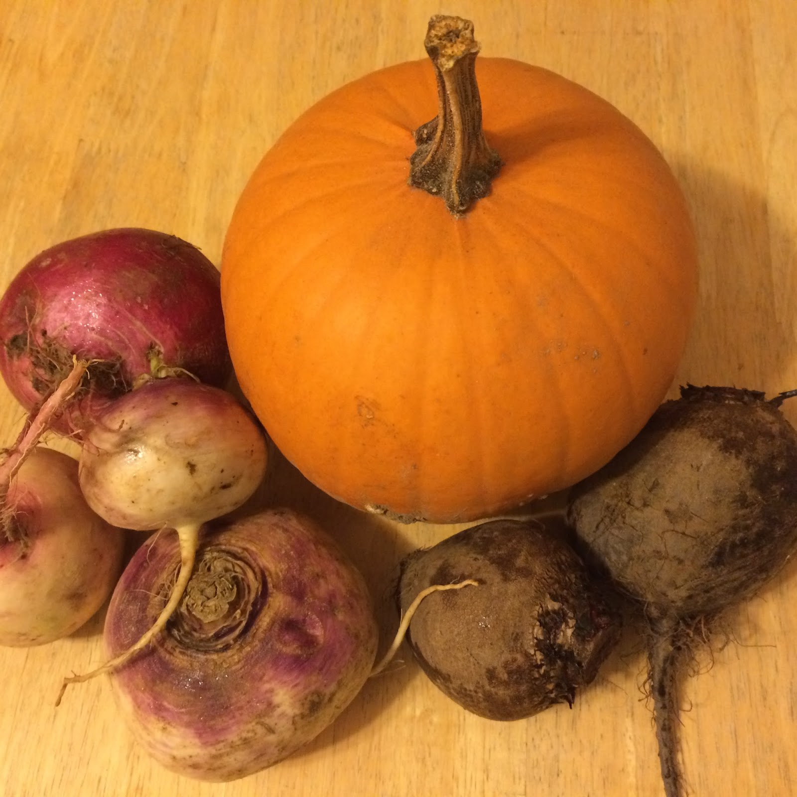 | Roasting party with sugar pumpkin, turnips, and beets |