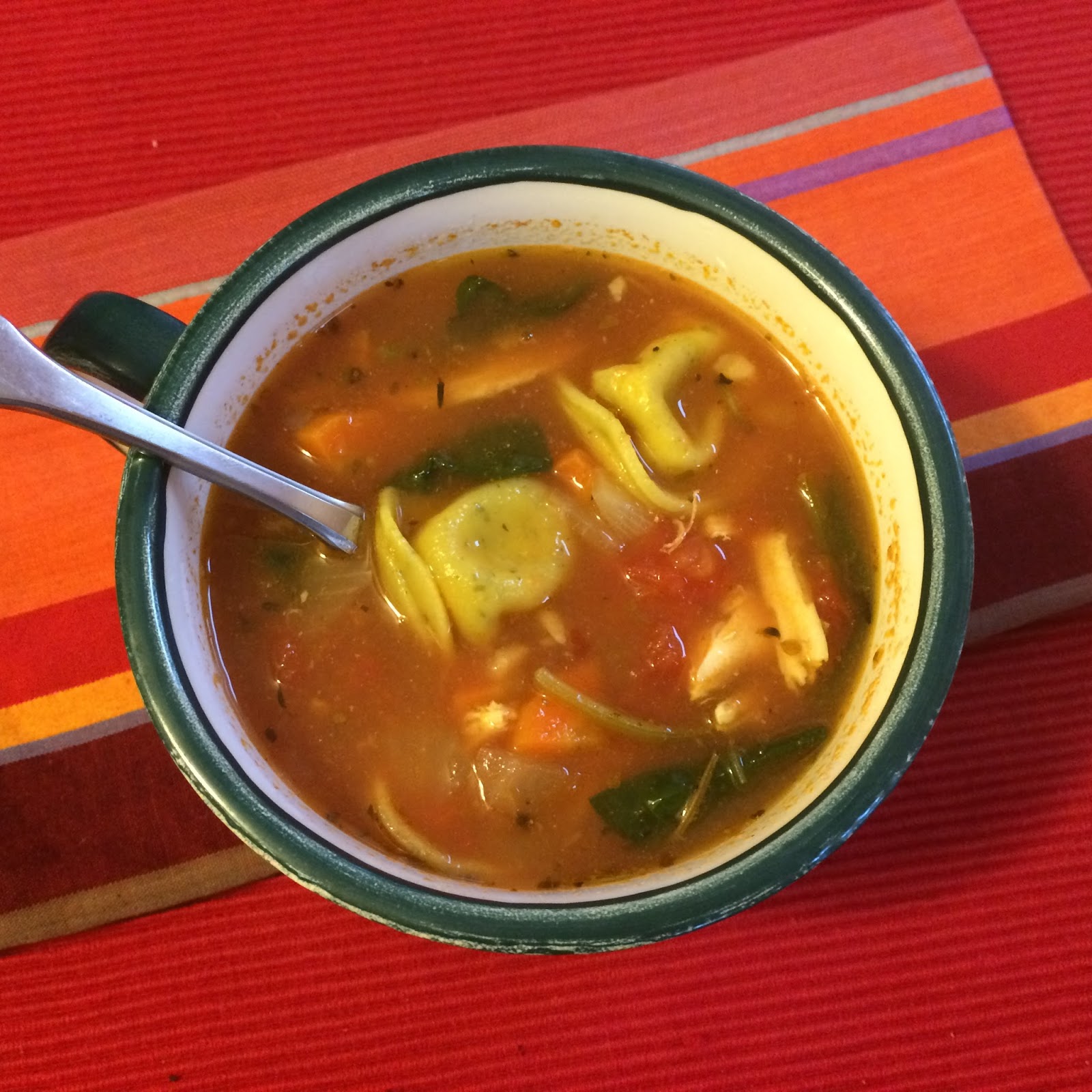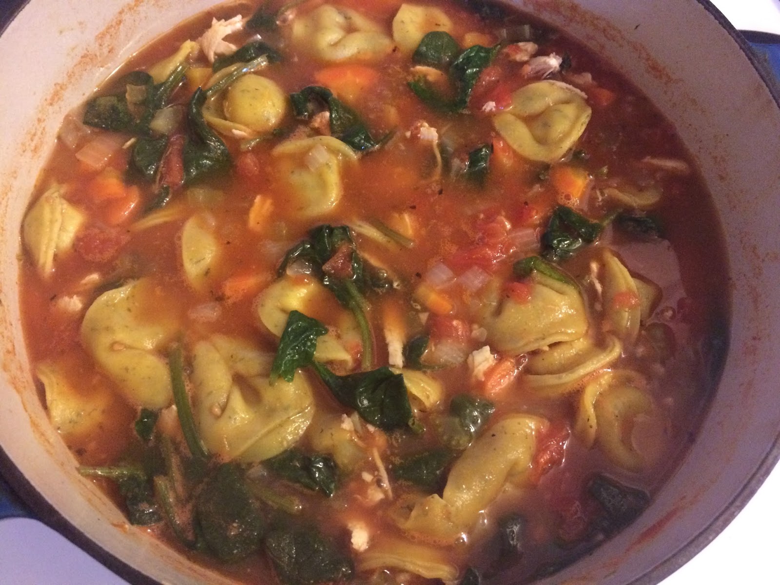 It’s a rainy Sunday, and another great day to make soup. I had the idea to make a tortellini soup. We had tortellini fairly regularly when I was growing up and we’d always say “The Tortellinis are coming for dinner.” Last weekend I made a version that also had cannellini beans, and I thought it would be too much if I also added tortellini. So I tried again this weekend and now I’m sharing it with you!