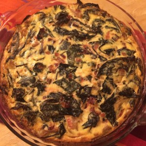 This is one that really comes in handy when I have a plethora of greens and eggs. It really works for any meal. Feel free to substitute other vegetables for the chard, and if you don’t have green onions then a regular ol’ white or yellow onion works just fine. You can make this in a pie plate or a muffin tin. The muffin tin works great for breakfast or snacks on the go.