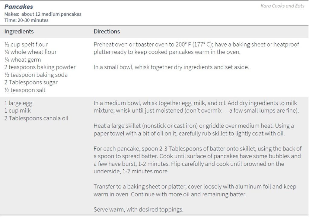 This is my go-to pancake recipe. I love the nuttiness of the spelt flour and the texture from the wheat germ. They taste extra yummy with Nutella!