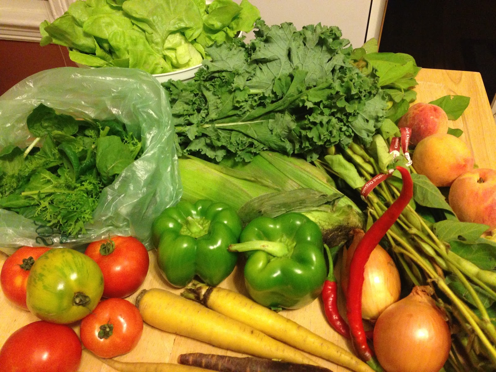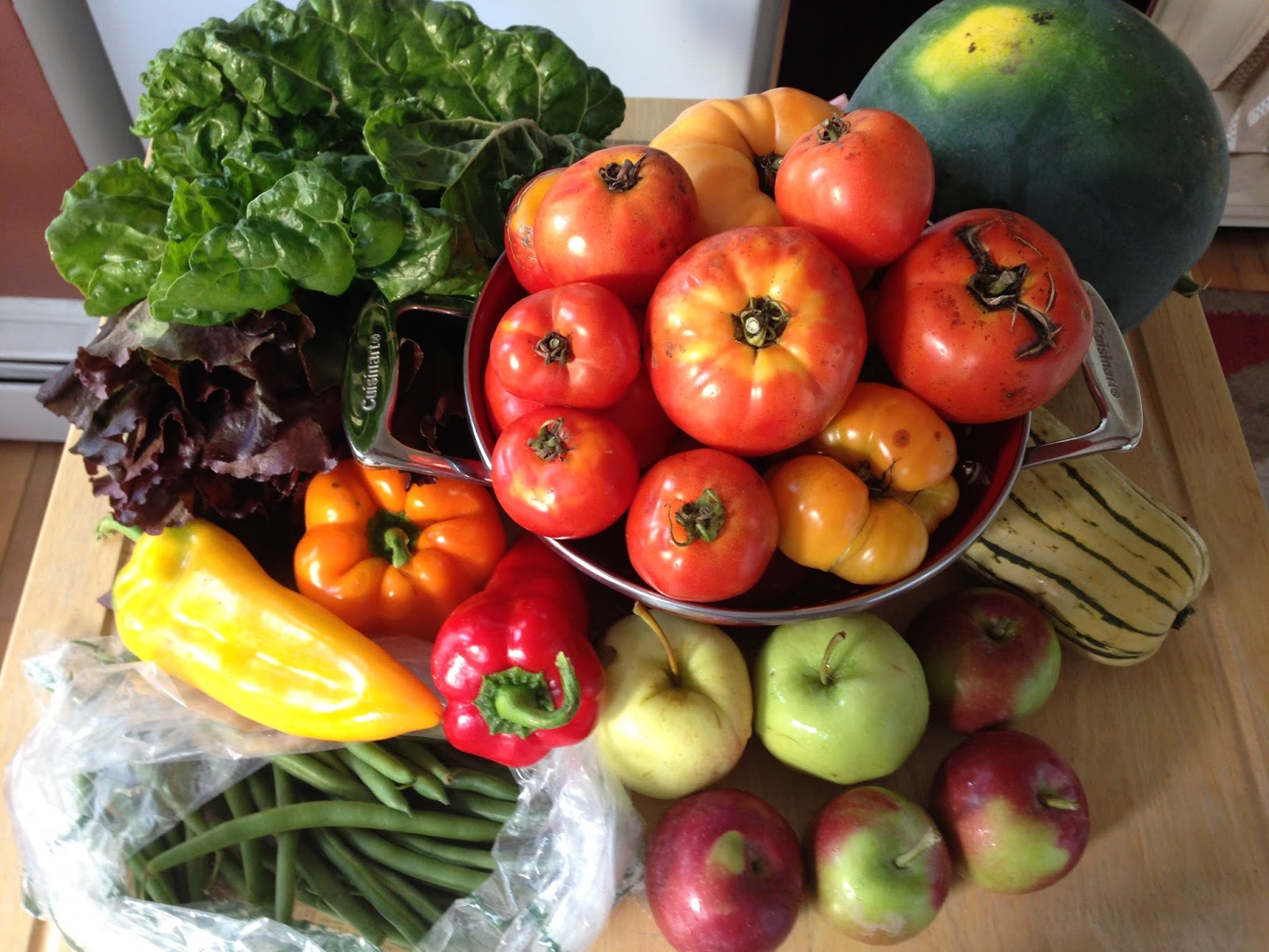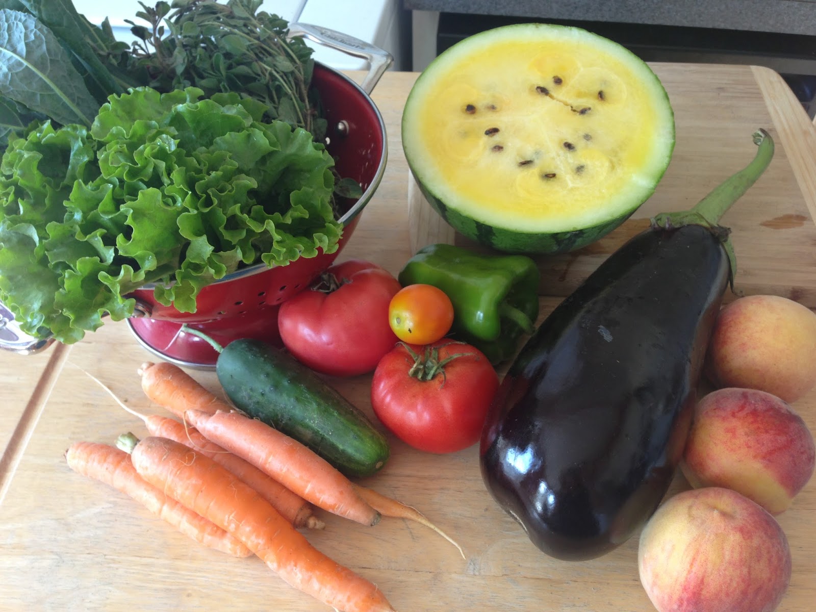 There’s something about the color yellow that always makes me happy, and I couldn’t help but smile when I cut into that yellow watermelon. In other yellow vegetable news, I will be super sad if we don’t get any more corn. I now have two weeks of Tuscan kale…I really need to make kale salad, since the original recipe calls for raw Tuscan kale (rather than the regular kale I usually use).