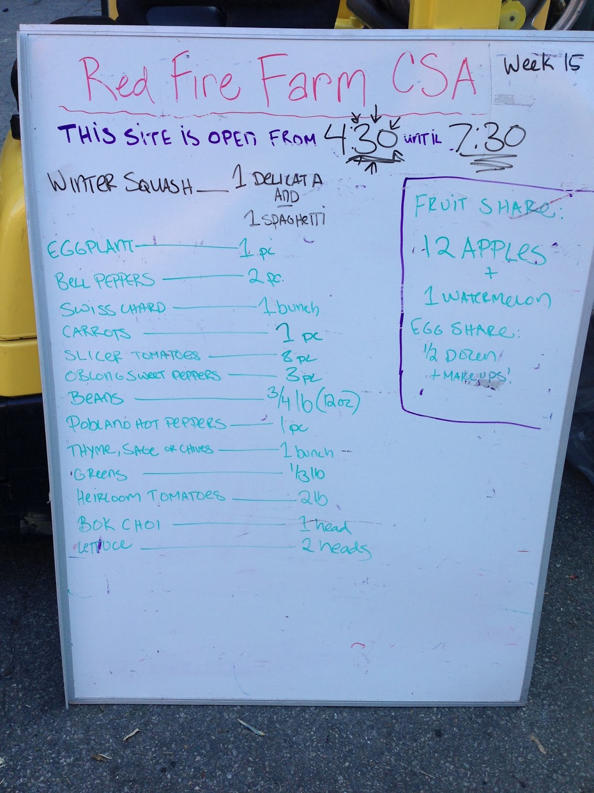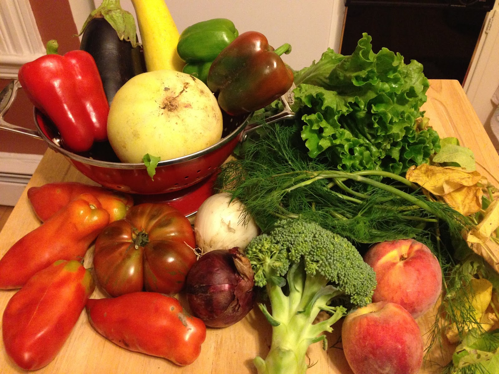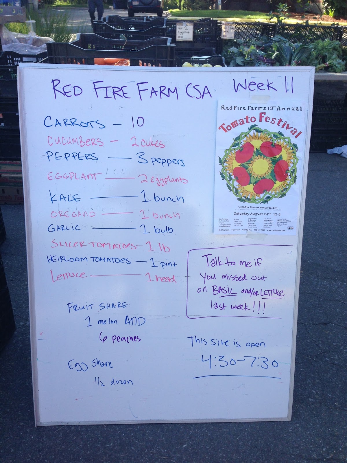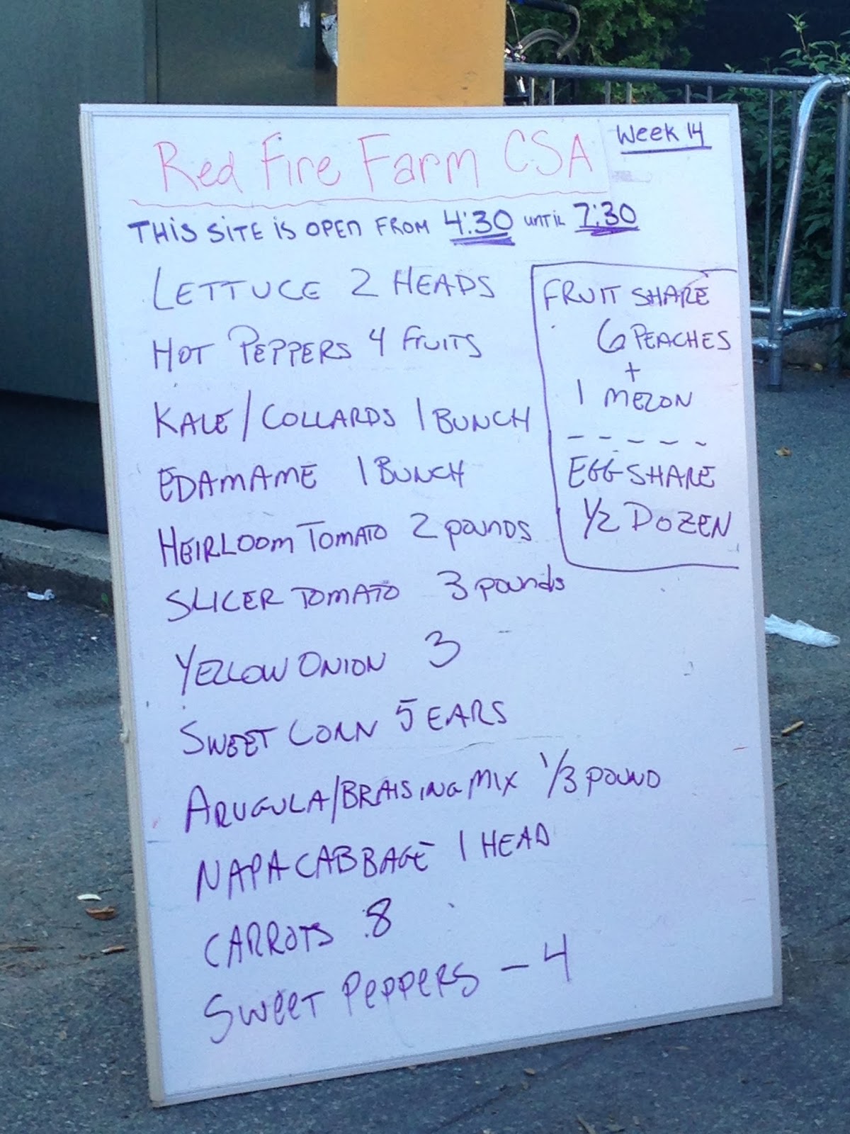 There’s something about the color yellow that always makes me happy, and I couldn’t help but smile when I cut into that yellow watermelon. In other yellow vegetable news, I will be super sad if we don’t get any more corn. I now have two weeks of Tuscan kale…I really need to make kale salad, since the original recipe calls for raw Tuscan kale (rather than the regular kale I usually use).
