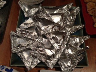 My farro experiment turned out to be pretty tasty, in the form of a warm farro salad, and great for sharing. The rest of the meal came together super well, with “Holy yum chicken,” warm French lentils, pizza (with apples, bacon, and goat cheese), and apples with caramel dip. I do heart potluck…must plan another one soon.