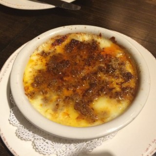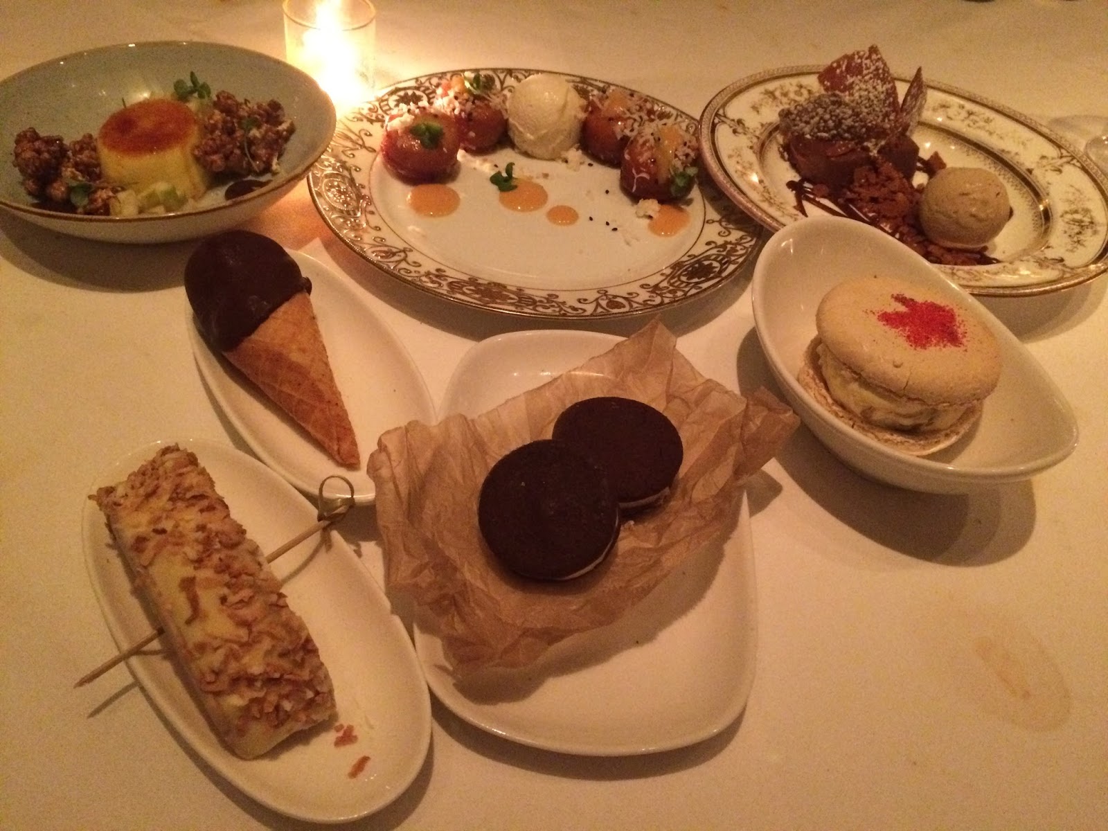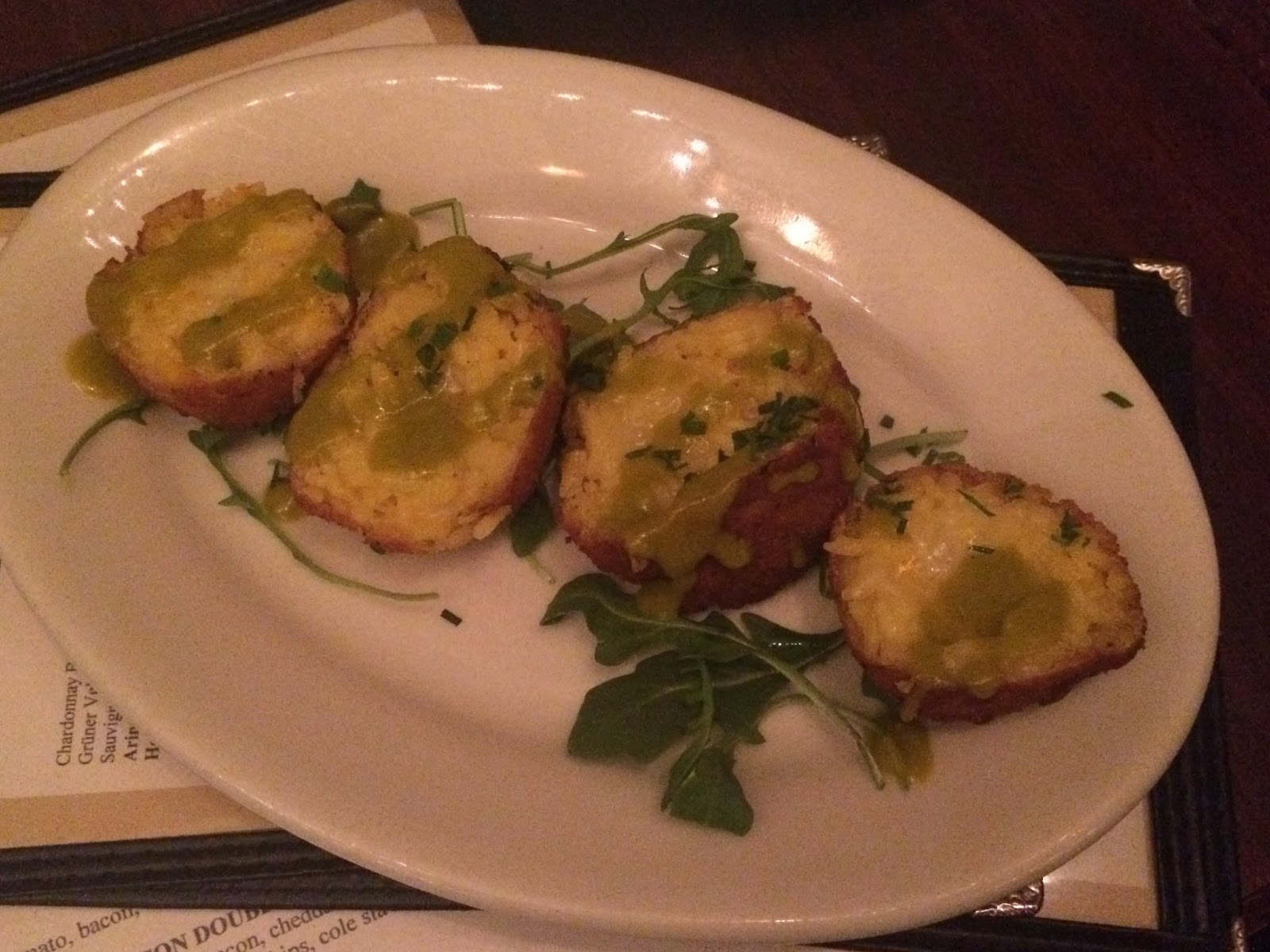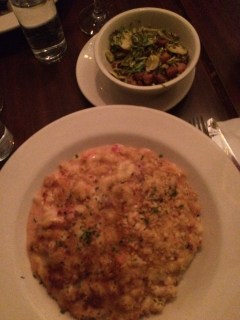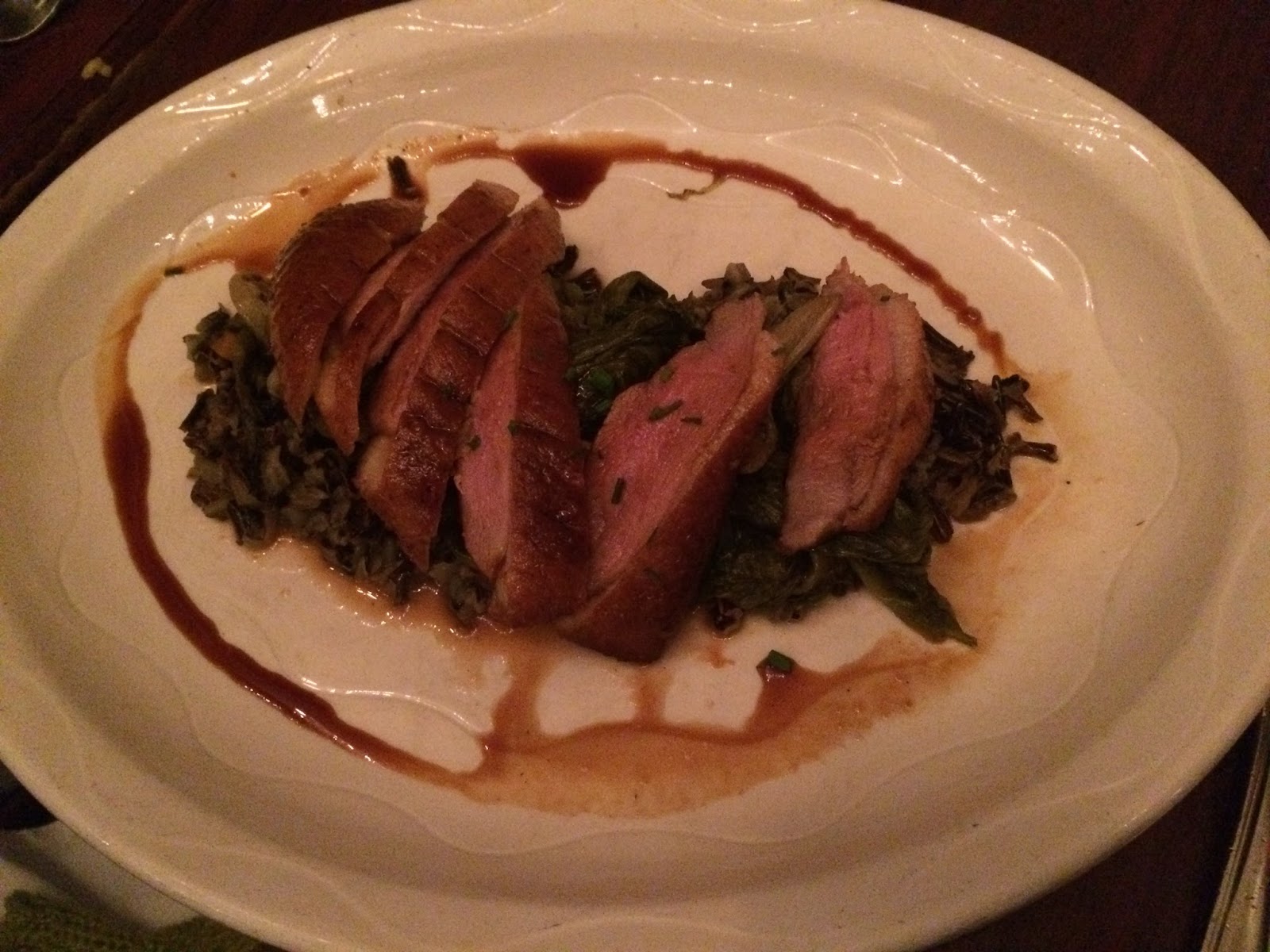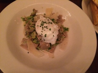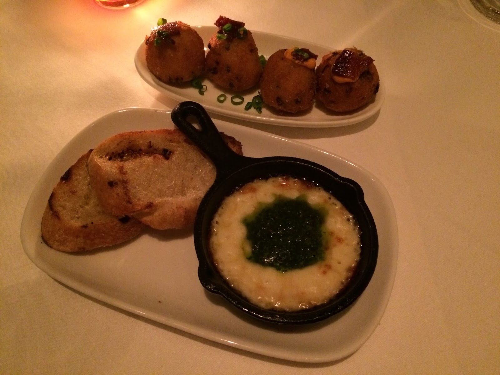 I had a reservation for eight people at 5:30 PM. When the numbers dropped to six, I called to see if they could accommodate us a little later, which they did. Luckily they continued to be accommodating as most of us were late due to T and traffic issues. After my two-hour drive from work, cocktails were definitely in order. They have a very interesting cocktail menu, including several absinthe concoctions. Absinthe is a liquor that is very high in alcohol content. But not to worry, the folks at How Stuff Works tell me that it does not cause hallucinations. I started with a “Williams Fall” which had vodka, roasted bartlett pear, chrysanthemum, and lemon. Delish. I usually stay away from milk punch, since milk and I don’t always get along, but a sip of the “Milk punch of the moment” was quite yummy and I was quite in awe of the fancy ice cube.