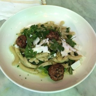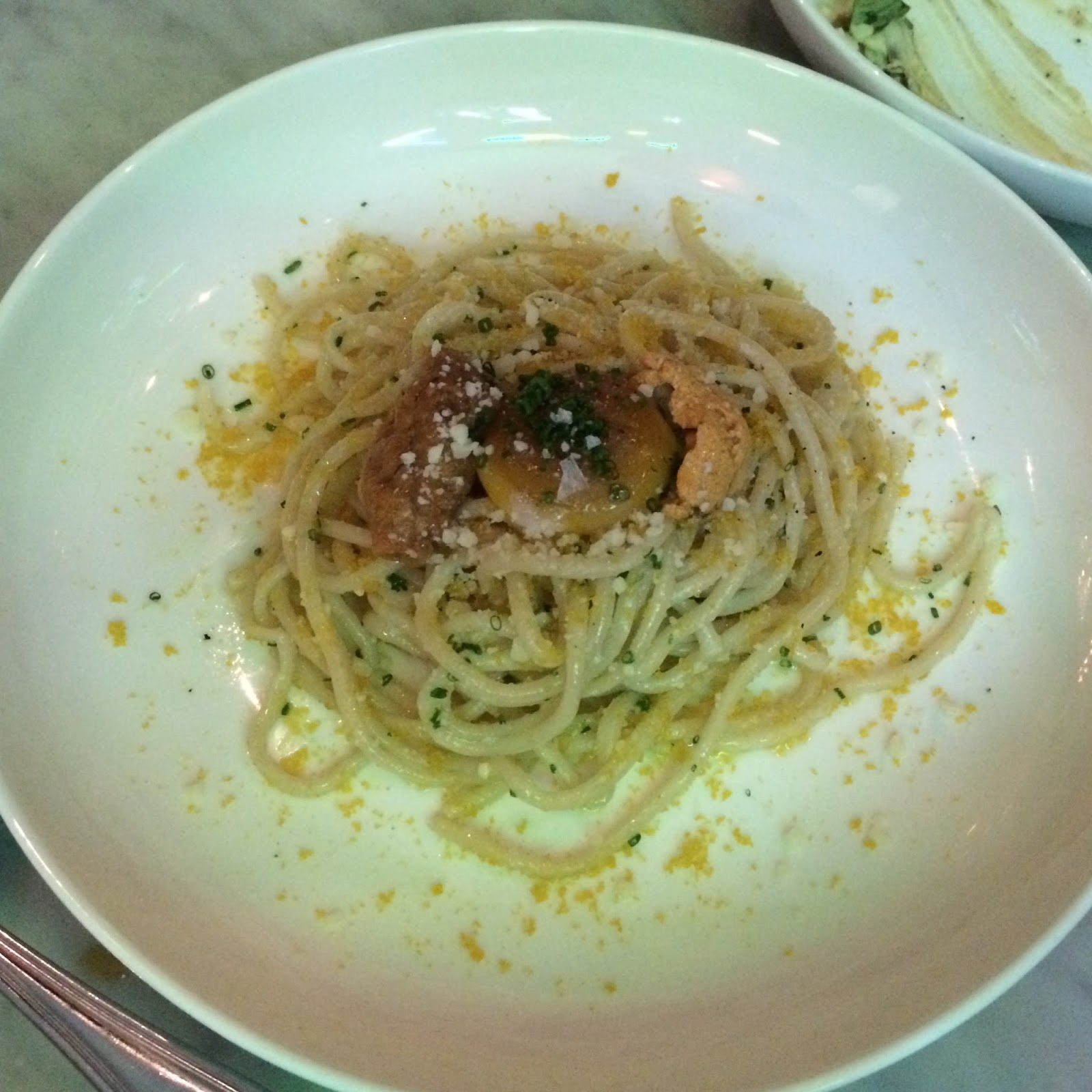 The final “course” included some of the most memorable. The roast for the table was the market vegetable, which was gorgeous. It had so many beautiful late-season veggies and the Romanesco was the star. What else was in it? You name it…radish, tomato, potato, patty pans, corn salsa, all served over cashew and herb butter. We also ordered the Uni bucatini, the octopus polpetti, and the bone marrow. The pastas were both so so good, the bucatini came with smoked egg yolk, pecorino, and bottarga and the octopus polpetti came with wheat spaccatelli, mint, chiles, garum, and ricotta salata. The bone marrow (aka meat buttah!) came with lobster salad, tarragon, and Kenny’s croissant crumbs. This was super rich and decadent so one bite on the buttery bread (thanks Kenny!) was just enough. I don’t think I’ve had the bone marrow at Toro, but someone said that this ranks up there with that.