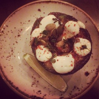 The dessert game was on point, which is always a nice surprise! No one warned us that the cinnamon sugar donuts were regular-sized donuts, so we got two orders and still managed to polish them off along with the accompanying dark chocolate ganache with cacao and coffee. To balance out the chocolate we also got the hearth-baked fruit crostada (apple) that came with maple ice cream.