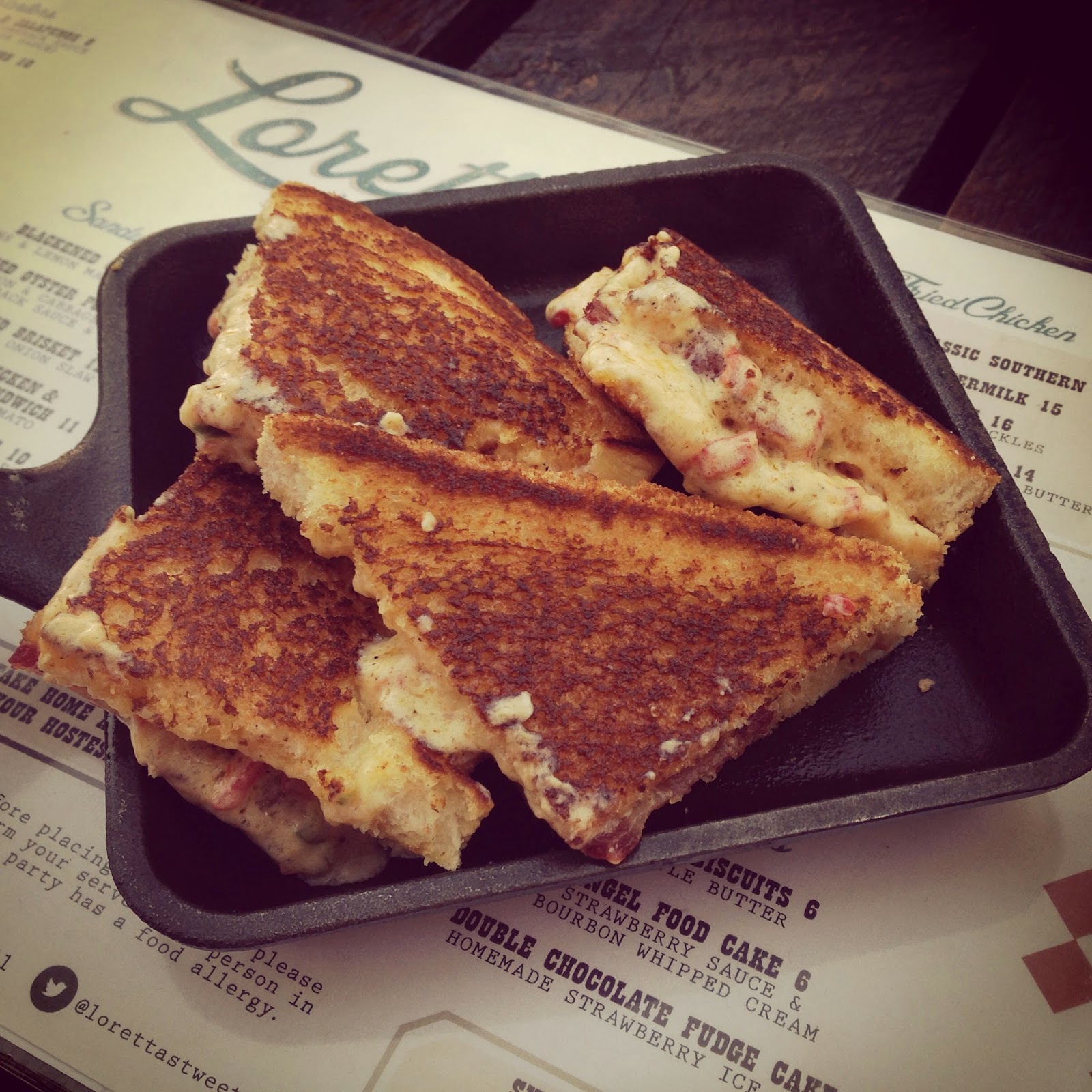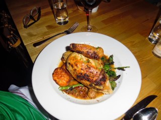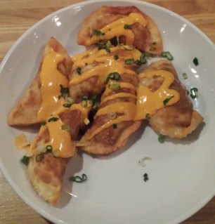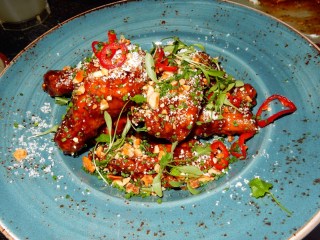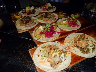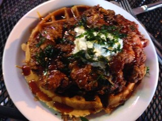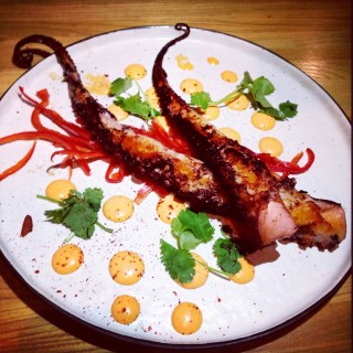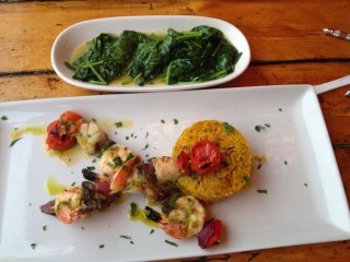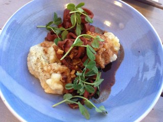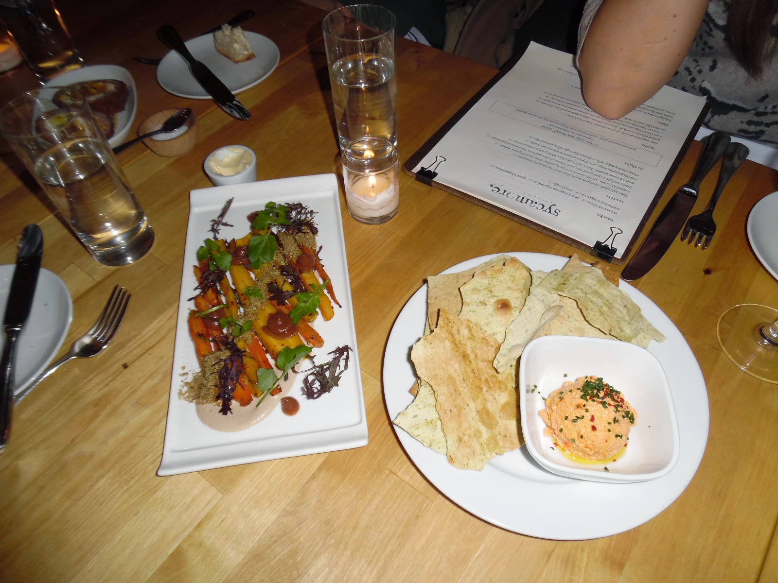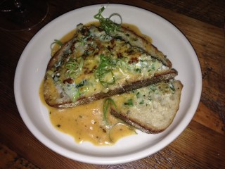 All of the sausage is housemade, and was definitely a highlight of the meal. From the “Off the Block” section of the menu we ordered the morcilla and the Bazz hook-up board, which consists of four items from the “off the block” section of the menu and one off-menu item. The evening we went, the Bazz board had mazzafegati (pork liver sausage), sobresada, chicken rillettes, calf’s liver mousse, and lomo (cured pork loin). The faves were definitely the morcilla, as well as the sobresada, and calf’s liver mousse. The mazzafegati had a really delicious char on it. We also got the N’awlins barbecue shrimp toast with “sexy scallions,” the herb-marinated beets with raita and sunflower seed granola, and the pork belly butter. The pork belly-honey butter came with crackers, cracklins, and pickled mango and had all the good flavors…salty and sweet. Someone even called it “out of this world.” I also know there were some non-beet fans who liked the herb-marinated beets…and as a beet fan, I loved them too!