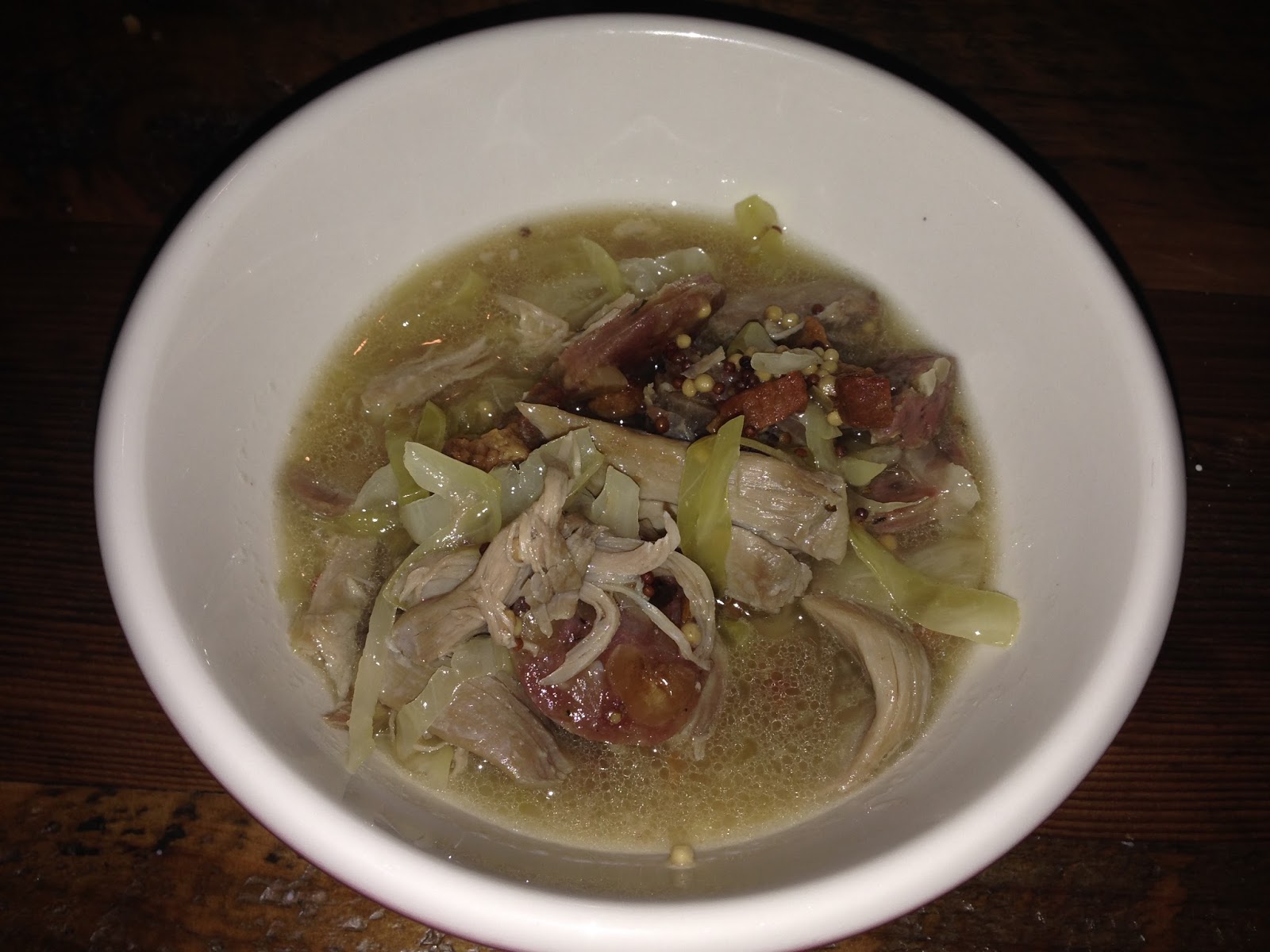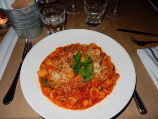 From the “Farm and Field” section of the menu, we were initially going to try just four of the dishes, and ended up trying almost everything! The Peruvian grilled chicken livers were not my favorite, but I really enjoyed everything else, especially the san agustín sliders, the orecchiette, and the choucroute garnie. The choucroute garnie was a bowl of deliciously salty goodness, with sauerkraut, saucisson noisette, duck confit, bacon lardons, and yukon gold potatoes. We also got the hanger carpaccio (with queso verde, oyster mushrooms, peanuts, omelette), the cherry-glazed lamb ribs (with green garlic and chermoula), and the duchesse potatoes (red wine-poached bone marrow, pickled kumquats, fiddleheads, saba).