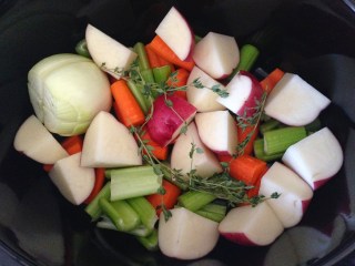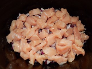 1. To the ceramic insert of your slow cooker, add sweet potatoes, onion, pepper, and garlic. Stir in diced tomatoes, chipotle peppers, black beans, spices, and shredded chicken.
