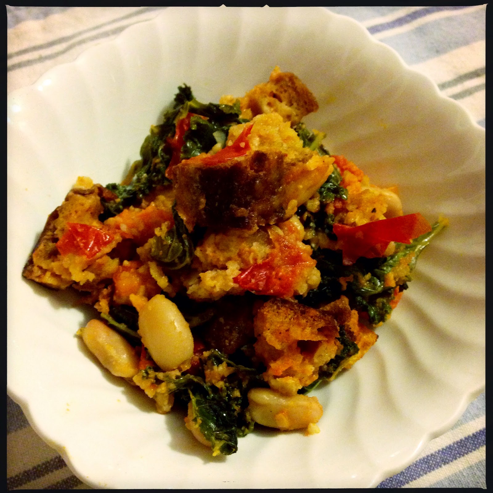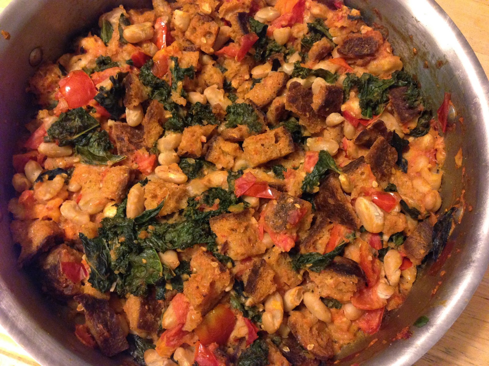 I used cannellini beans instead of Great northern beans and substituted kale and beet greens for the frozen spinach (added at step 3 with the tomatoes). I also decreased the salt from 2 teaspoons to 1/2 teaspoon. That would have been a whole lotta salt! I didn’t have any fresh basil so I omitted that as well.